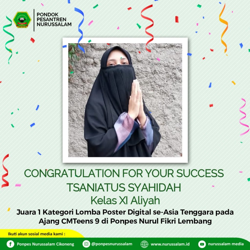 Hari Rabu (17/3) lalu, beberapa siswi MA Nurussalam ikut berpartisipasi dalam ajang perlombaan CMTeens 9 (Camp Muslimah Teens 9) se-Asia Tenggara yang diselenggarakan oleh ponpes Nurul Fikri Lembang secara online. Usaha yang dilakukan tidak sia-sia. Ketika pengumuman kejuaraan dari perlombaan ini pada kamis (25/3), usaha maksimal yang dilakukan membuahkan hasil yang cukup memuaskan. Tsaniatus Syahidah, […]